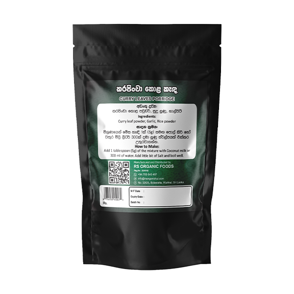 Produced by RS Organic Foods, our Dried Curry Leaves Porridge brings together the wisdom of Sri Lankan heritage and the goodness of nature into a simple, daily meal.